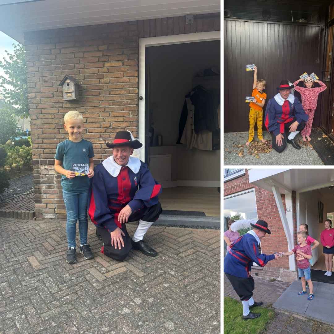 Met plezier heeft Frans de kaarten aan zoveel enthousiaste kinderen uitgereikt, leuk dat WIJ DIT ALS HET GILDE VAN SOEST konden doen EN DIT MEDE dankzij de deelnemende verenigingen en het Nationaal Militair Museum.